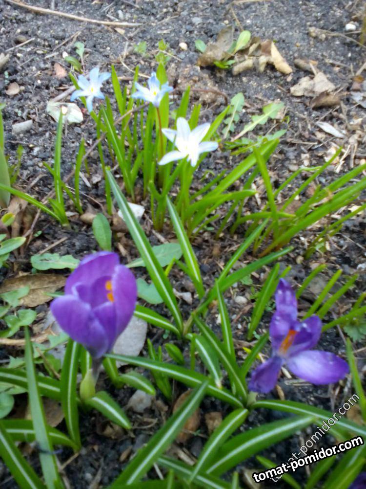 Крокусы и хионодокса. Все растут у меня не первый год. Цветение крокусов первое.