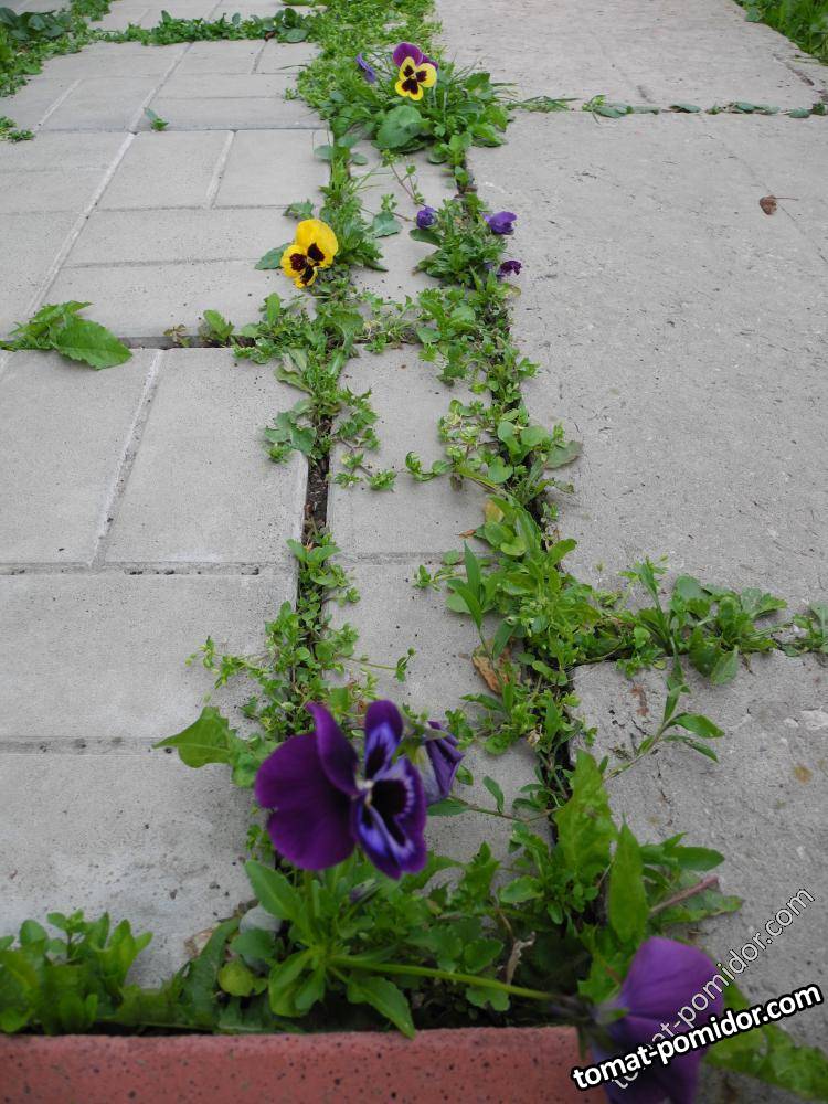 Самосев виолы между плитками
