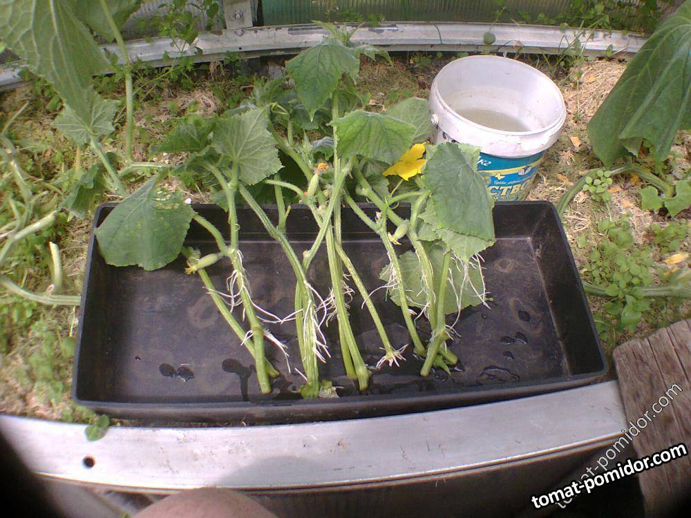 огуречные побеги в пластиковом горшке