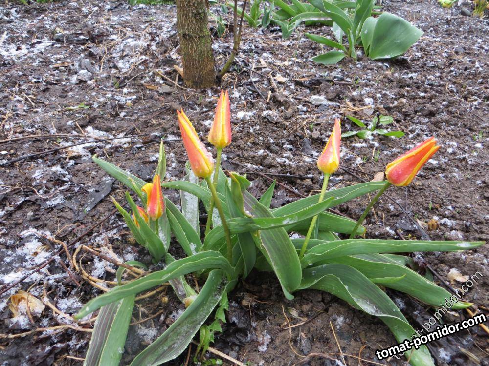 тюльпаны и снег идет