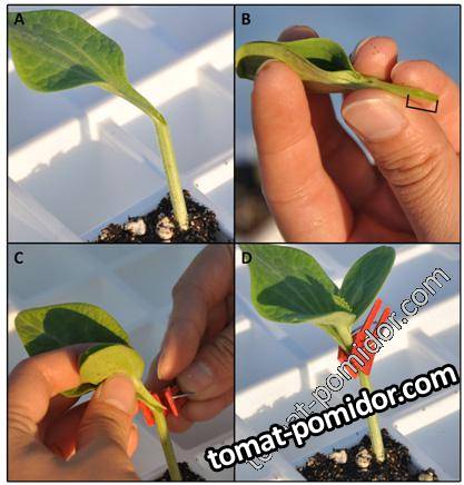 Фото университета Флориды Прививка методом вприклад с одной семядолей (копулировкой)