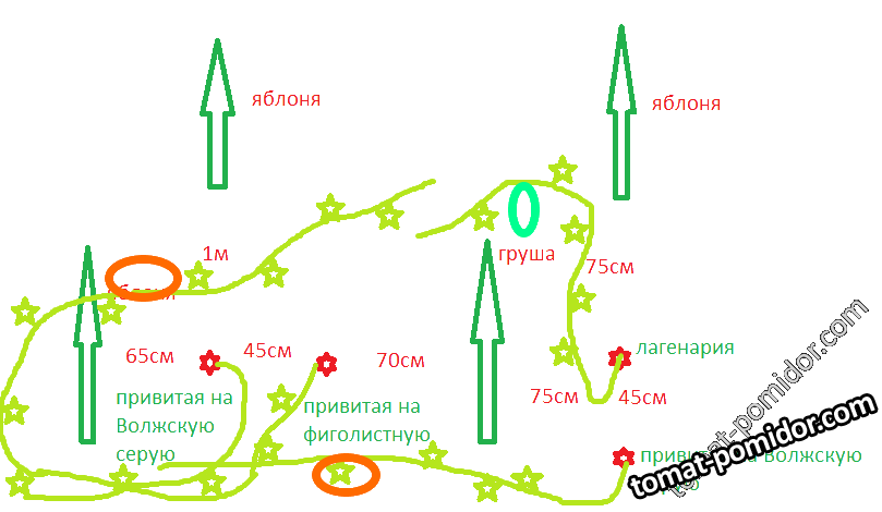 Схема посадки привитых тыкв. Место было только под молодыми саженцами. 07.08.2016