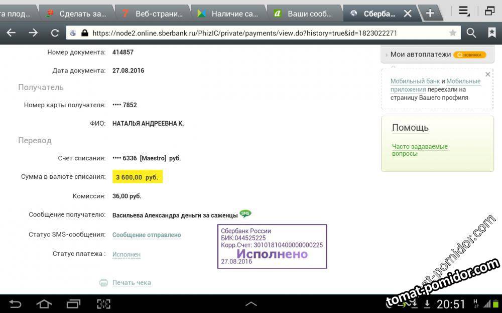 оплата саженцев
