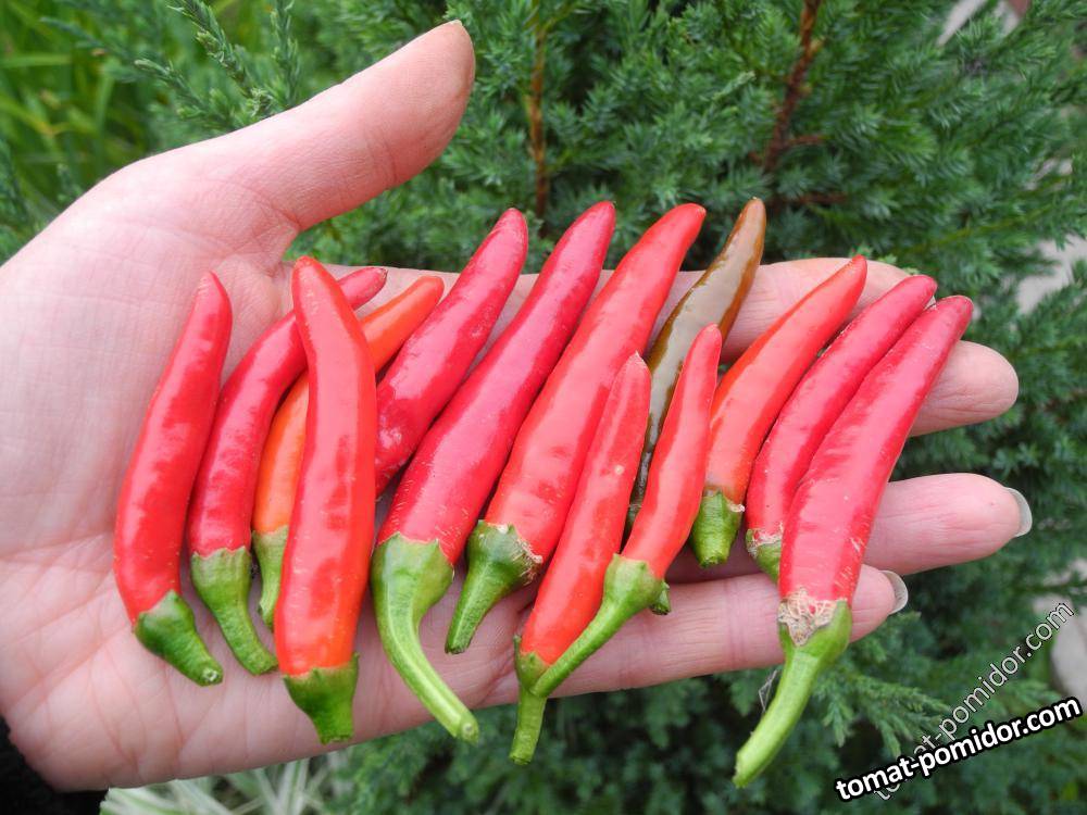Итальянский комнатный-очень декоративный острый перец высотой до 35-45 см, небольшие кустики увешаны гроздьями длинных перчиков.