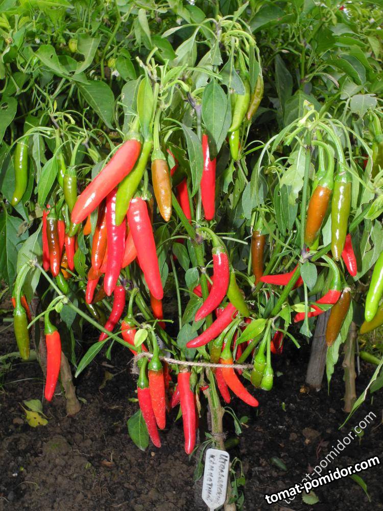 Итальянский комнатный-очень декоративный острый перец высотой до 35-45 см, небольшие кустики увешаны гроздьями длинных перчиков.