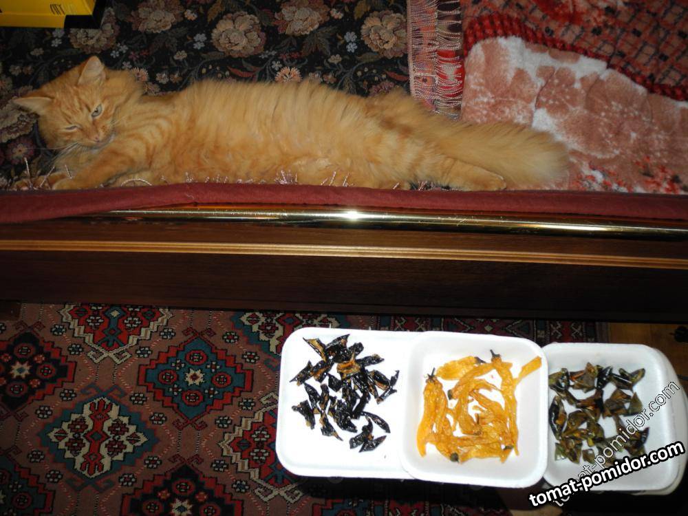 Барсик следит за сушкой острых перцев