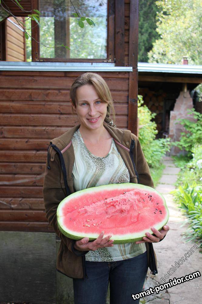 Медовый гигант - вес 15,6кг, зрел 46дней. :hey: Просто отличный - плотный, сладкий. Звучало даже мнение (мужское, понятно )))), что приторный! : но я не согласна - арбуз не бывает СЛИШКОМ сладким :D :D :D