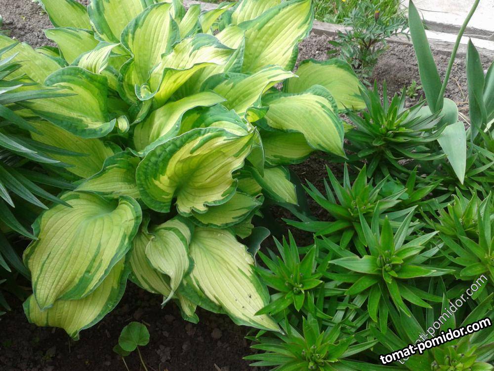 хоста и Ораж Пикси с бутонами 21 мая