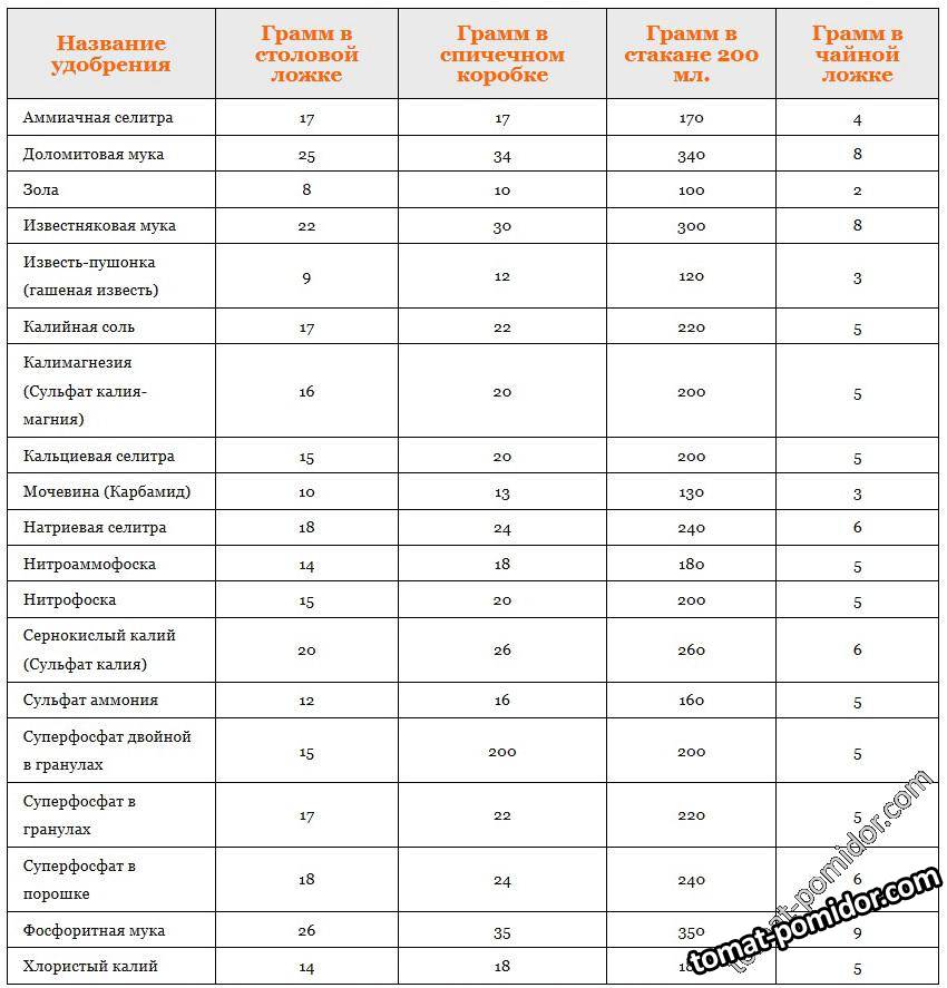 Таблица "Меры веса удобрений"