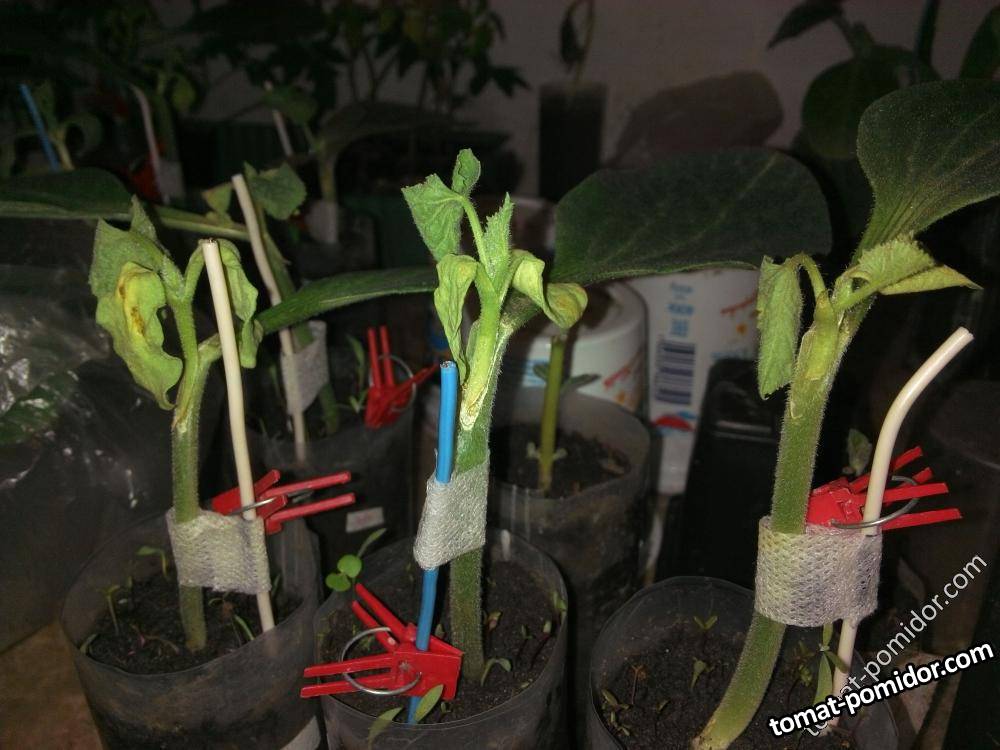 Неудачные прививки дынь - клипса сильно передавливала стебель дыни в месте прививки 13 мая 2016г