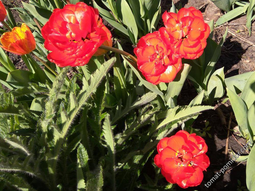 Махровые красные тюльпаны