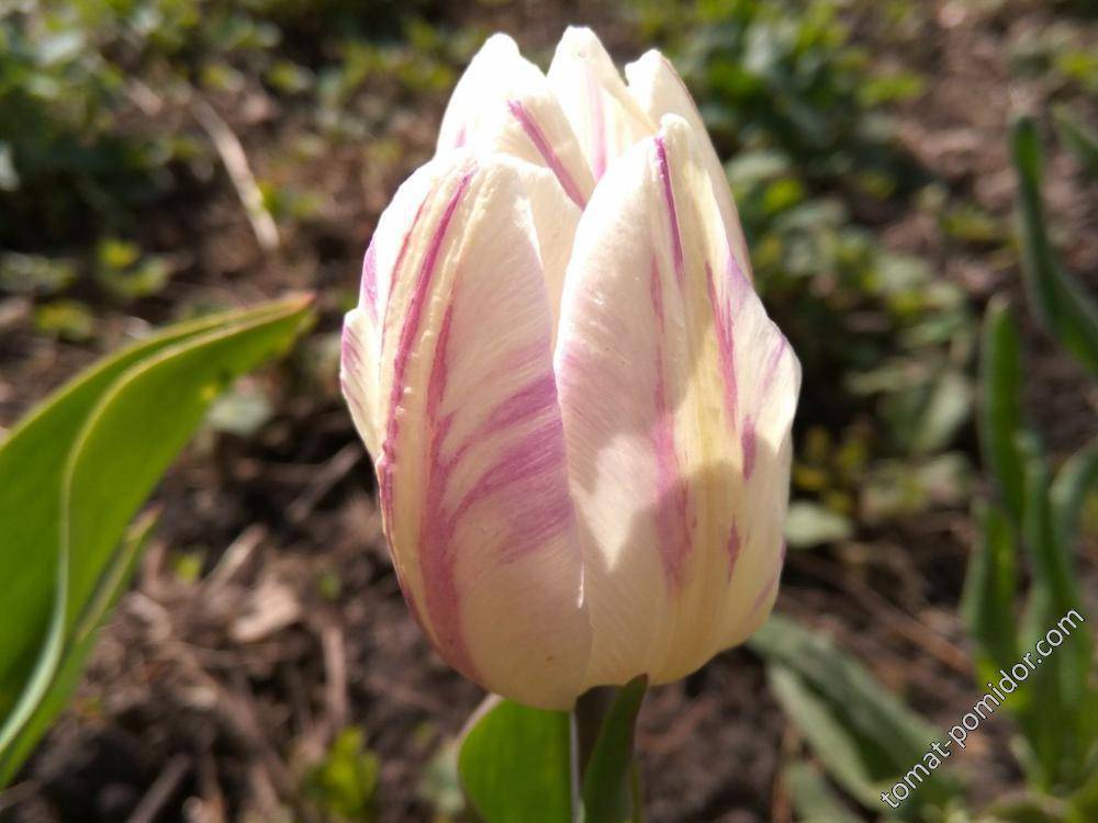 Пестрый бело-сиреневый тюльпан