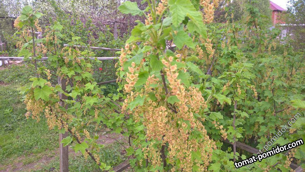 Красная смородина цветет