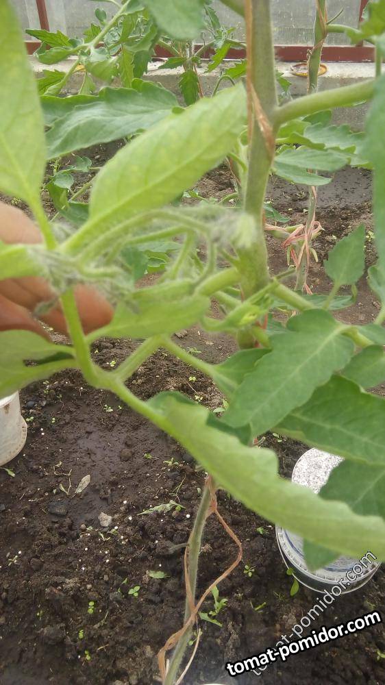 Томаты жируют. Вчера полила монофосфатом калия (1 ложка на 10 л. воды). По 2-3 литра под каждый куст. Сегодня белые точки в основном на нижних листьях. Что это? Подскажите,пожалуйста.