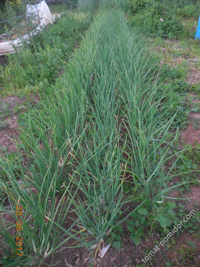 Грядка с луками издалека