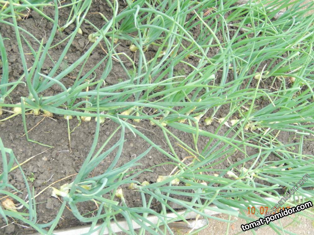 лук повдоль грядки в холмиках