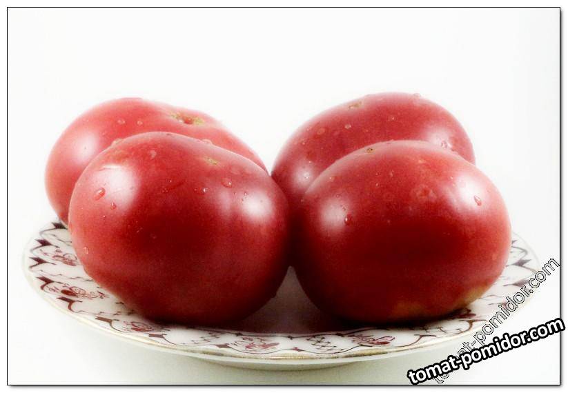 Среднеранний сорт, индет, лист картофельный, плоды розового цвета, плоскоокруглой формы, мякоть бифштексного типа, нежная, сбалансированного вкуса, маслянистая, со сладинкой и кислинкой в послевкусии, плоды средние (300 г), салатного назначения, урожайный.