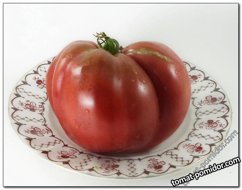 Среднеспелый сорт, индет, плоды темно-бордового цвета с темно-зелеными плечиками, сердцевидной формы, с тонкой кожицей, мякоть нежная, маслянистая, светится вся, гармоничного вкуса, с кисло-сладким освежающим послевкусием, деликатес! Плоды крупные (250-400 г), салатного назначения. Находка сезона 2017 года!