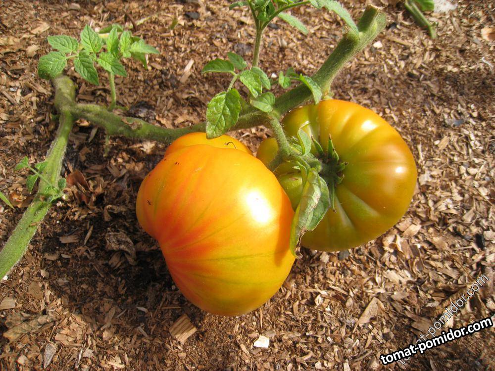Бред Гейтс назвал сорт именем своей жены – Джанет. Сорт среднеспелый. Индет. Плоды типа бифштекс, плоскоокруглые, слаборебристые, ярко-оранжевые, с желтыми полосками, мясистые, огромные, масса отдельных плодов доходит до 1 кг. Мякоть оранжево-желтая, как бы маслянистая, умеренно плотная, вместе с тем нежная, тающая, сладкая, отличного вкуса, с небольшим количеством семян. Сорт урожайный, устойчивый, не предназначенный для длительного хранения. Для потребления в свежем виде и приготовления соков, соусов.