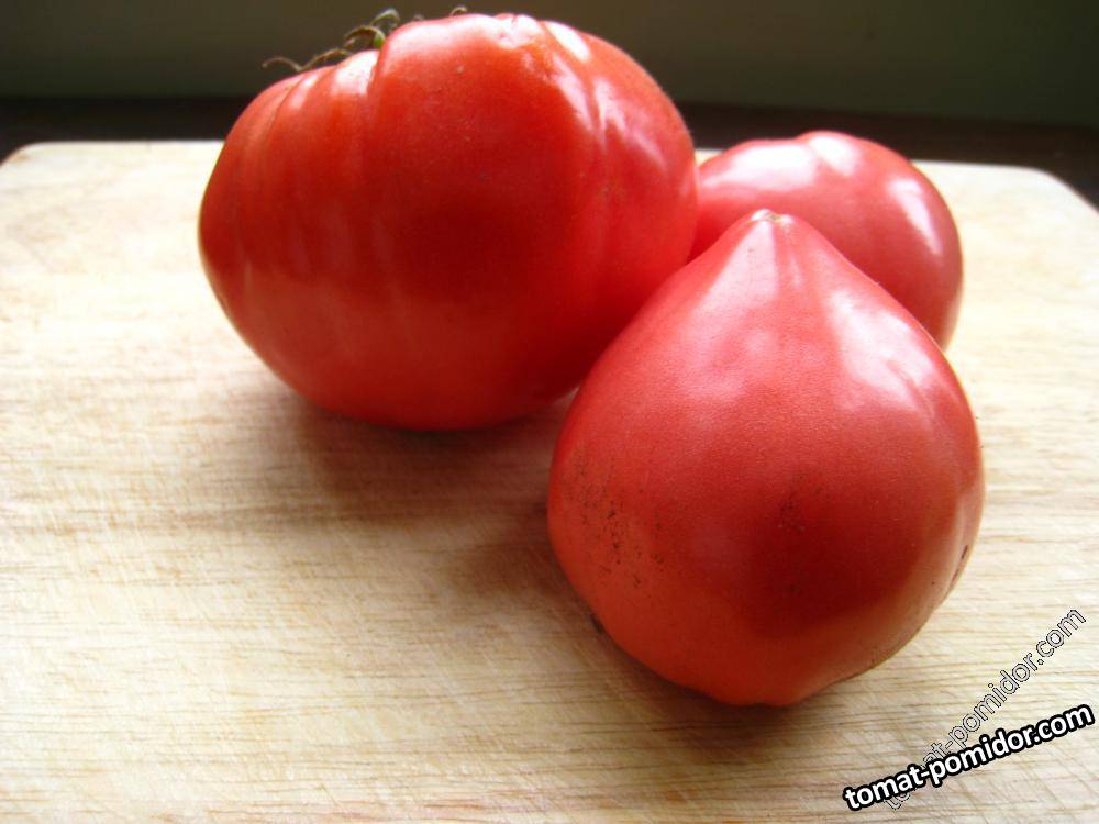 Старинный сорт народной селекции, итальянский вариант Бычьего сердца, но с отличиями. Сорт среднеранний, высотой не более 1,5 м. Полудет., требует умеренного пасынкования. Первые плоды скорее плоскоокругло-грушевидной формы, последующие – сердцевидные, крупно ребристые, насыщенно-розово-красные, мясистые, массой 350–500 г и более. Мякоть плотная, сладкая, ароматная, с прекрасным, настоящим “помидорным” вкусом. Сорт очень урожайный. Для потребления в свежем виде, в итальянской кухне традиционно используется для приготовления соков, соусов.