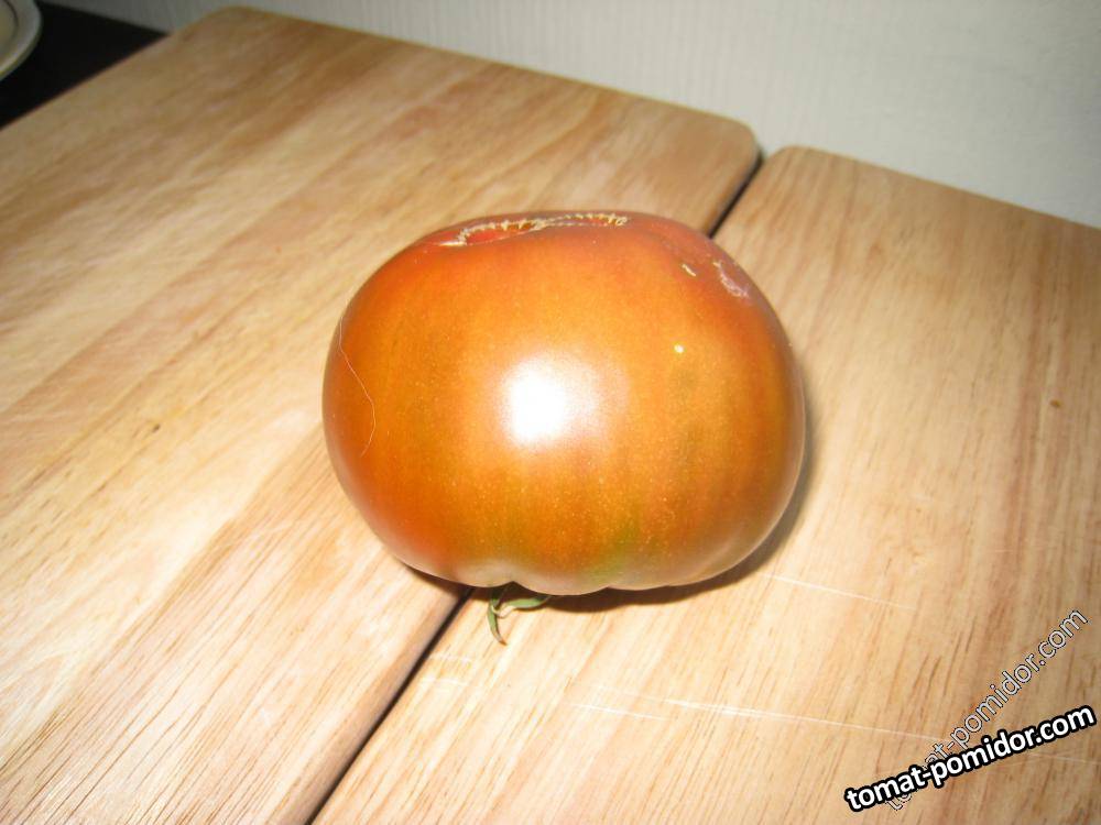 Сорт среднеспелый. Индет. Лист может быть как обычным, так и картофельного типа. Плоды типа бифштекс, плоскоокруглые, крупно ребристые, привлекательного шоколадно-малинового или шоколадно-пурпурного тона, с тонкой кожицей, мясистые. Первые массой 400–500 г, последующие – 300–350 г. Мякоть сочная, нежная, сладкая, исключительно вкусная, окрашена в насыщенно-красный с коричневато-пурпурным оттенком цвет. Сорт урожайный, устойчивый к болезням, но плоды могут растрескиваться от частого полива. Для потребления в свежем виде и приготовления соков, соусов.