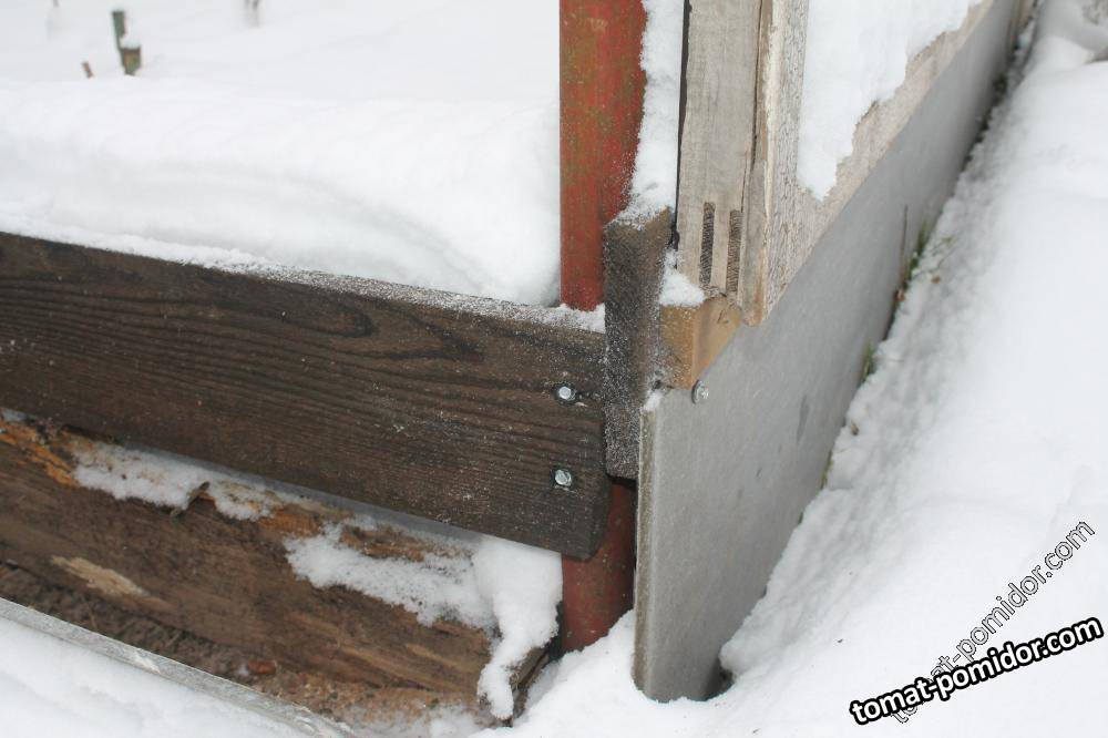 к сварному каркасу крепится саморезами обвязка из досок к которой крепятся рамы(поликарбонат) и юбка(с заглублением в грунт).