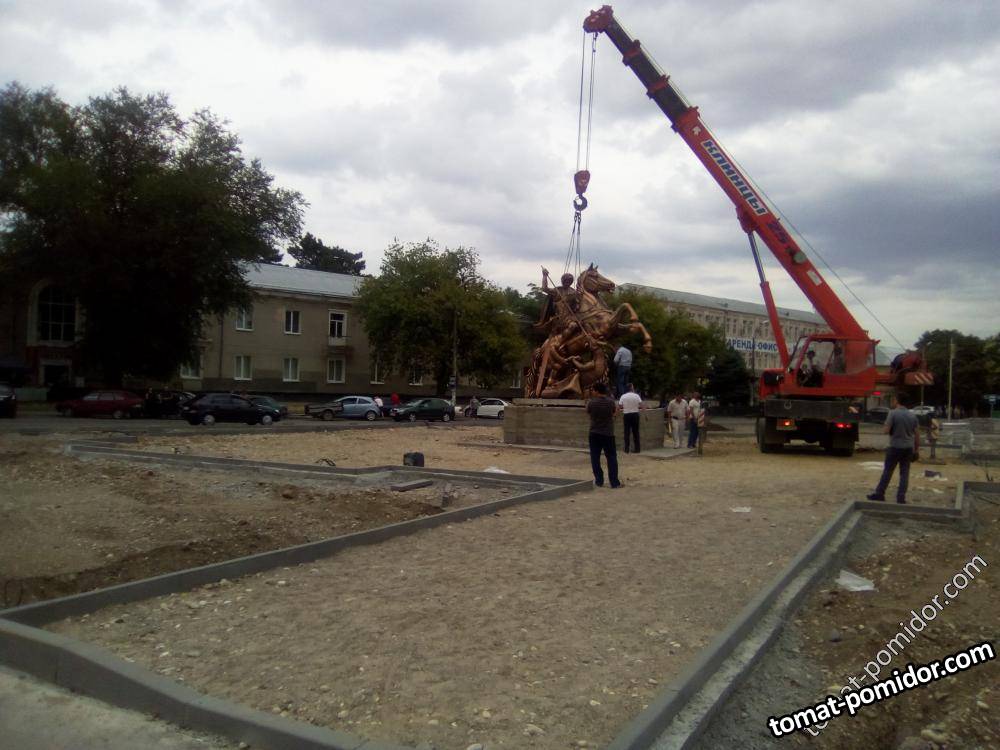Установка скульптуры Георгий Победоносец на площади города Георгиевск