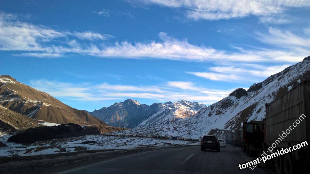 фуры перед границей на перевале