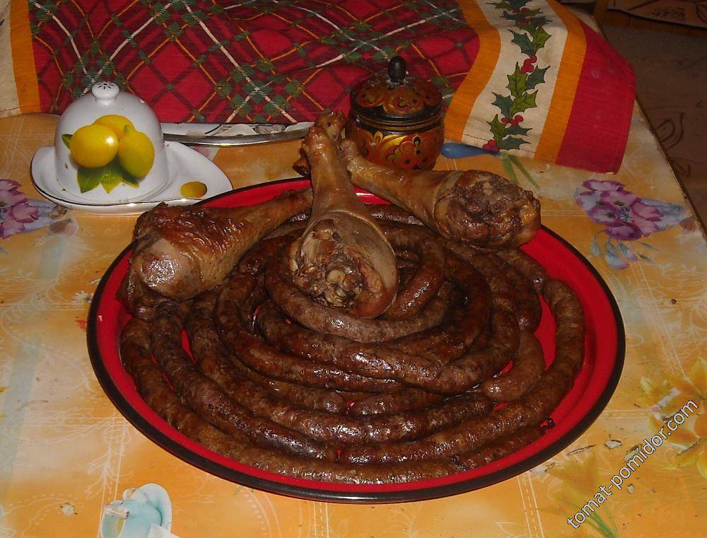 Колбаски и окорочка после копчения