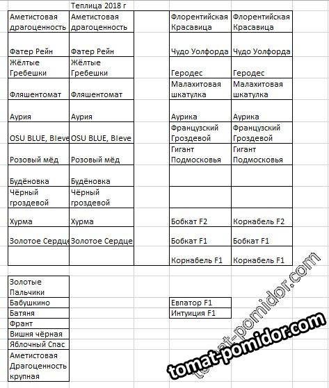 Теплица 2018 (план посадки)