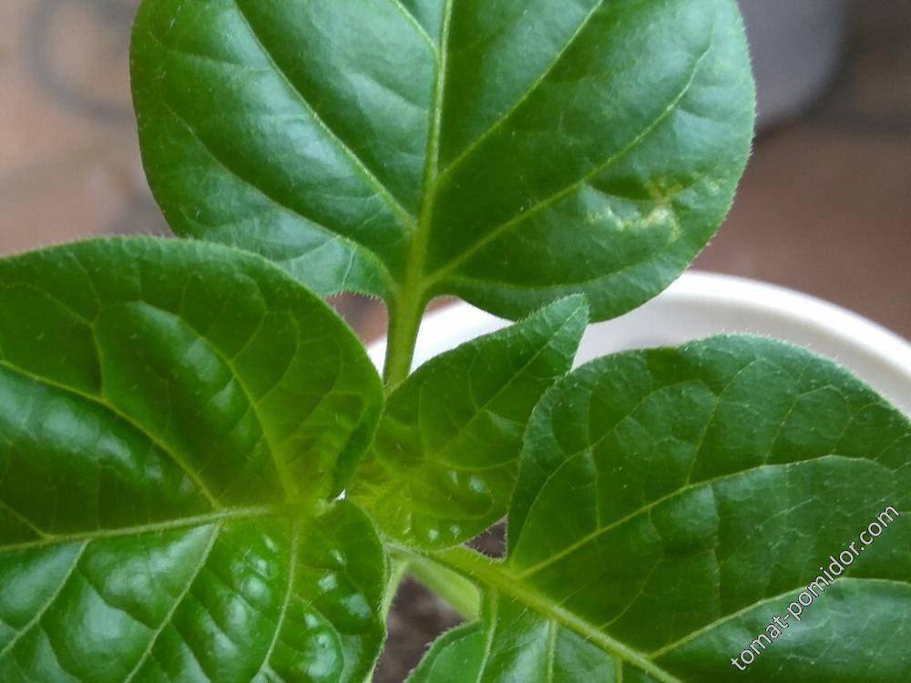Листок перца, пораженный трипсом