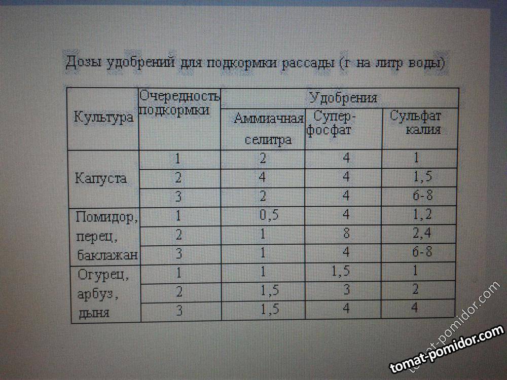 Подкормки рассады