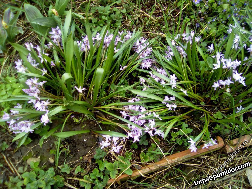 Вчера был сильный дождь и развалил кусты хионодоксы