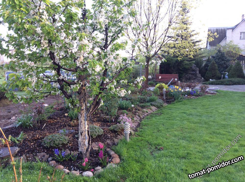 Черешня и цветник