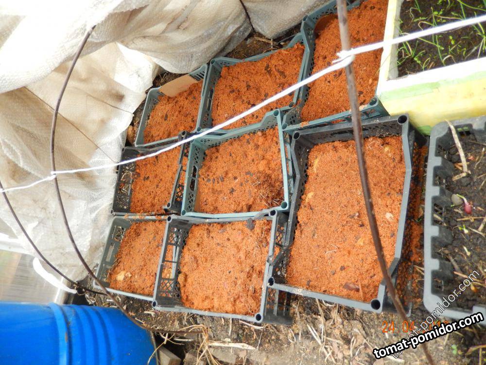 Разложили в 1 ряд в перепревший опилок