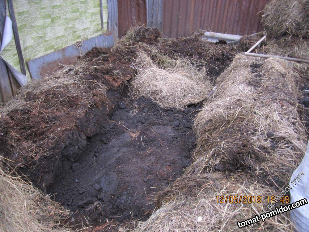 Сынуля выбрал землю, сложил сенную грядку под переносную теплицу.