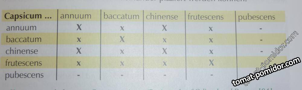 таблицa с вероятностью переопыления тех или иных видов перца между собой