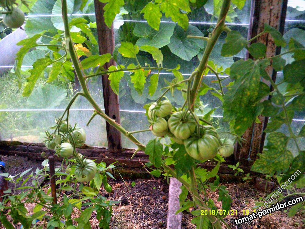 Рос в углу старой теплицы, подмёрз. Очень урожайный и вкусный. Но боялась, что болячек нахватал. Листья подозрительные были.