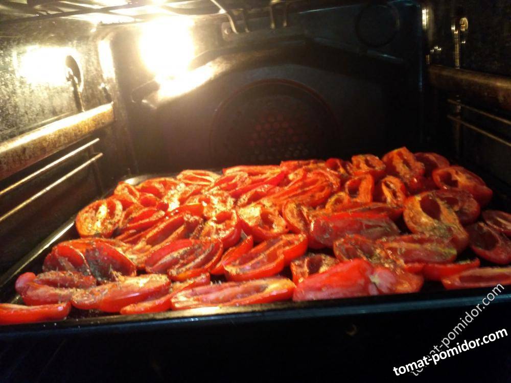 Очередная порция томатов вялятся в духовке