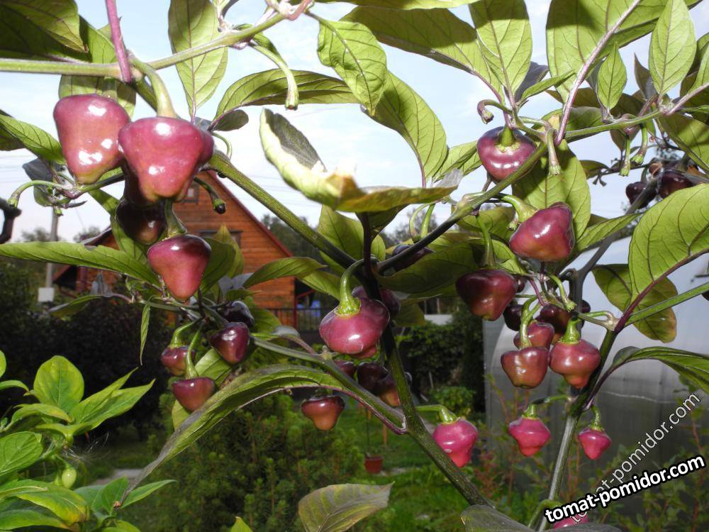 Довольно редкий и необычный сорт острого перца из Бразилии. Ветви имеют темный окрас, листья — сине-зеленый. Необычная форма плодов в виде маленького волчка. В биологической зрелости стручки имеют кремовый окрас с фиолетовыми наплывами. Стручки растут пучками от 3 до 6 в одном узле. Вкус и аромат фруктовые. Острота на уровне хабанеро. Растения высокие, до 150 см в грунте (в горшке не выше 50 см). Очень декоративные. Срок вегетации от 200 дней. Предназначен для выращивания в теплицах, оранжереях и в комнатных условиях в горшке от 4-х литров. Подходит для употребления в свежем виде и для цельноплодного консервирования.