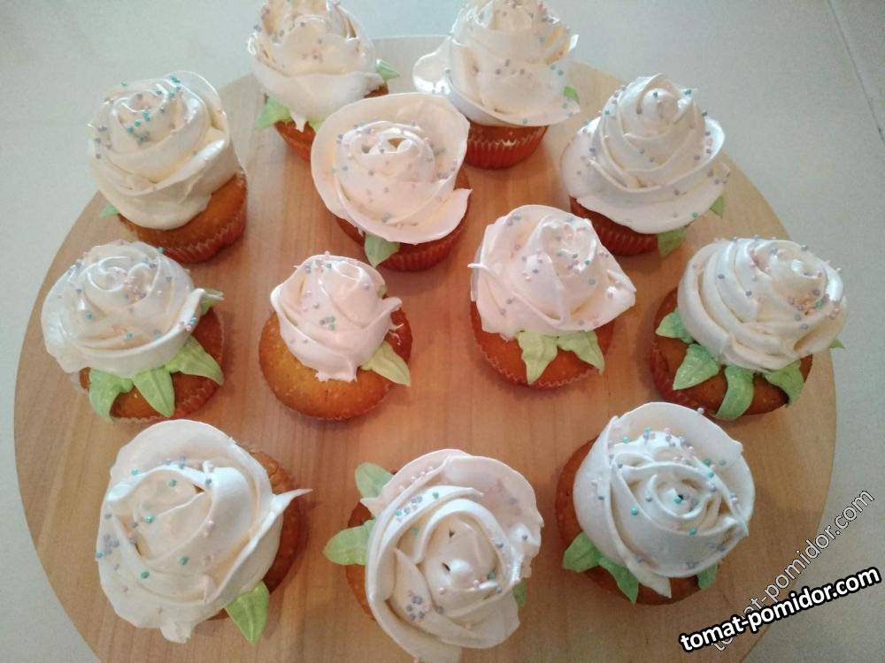 Капкейки, украшенные розами из БЗК