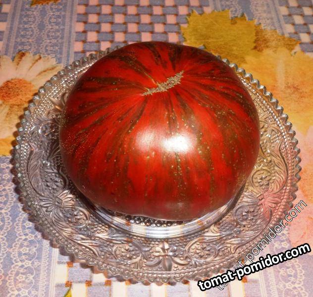 Шоколад полосатый (Chocolate Stripes) Срок созревания Среднеспелый Рост Индет Лист Обычный Цвет плода Полосатый, черные Форма плода Плоскоокруглая Размер плода 150-350 г Способ употребления Нарезка для бутербродов Оригинатор сорта США отзыв Вкус гармоничный, сладковато-кислый, сочный, деликатес