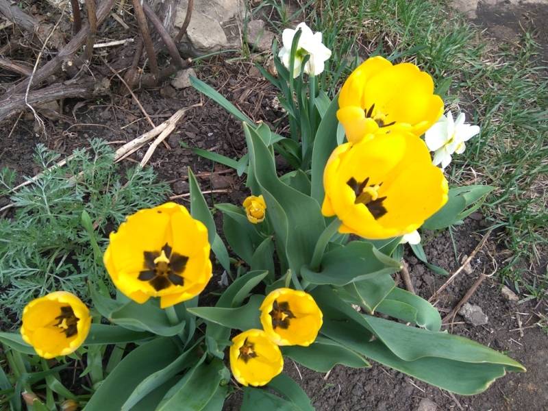 тюльпаны, нарциссы, полынь под виноградом.jpg