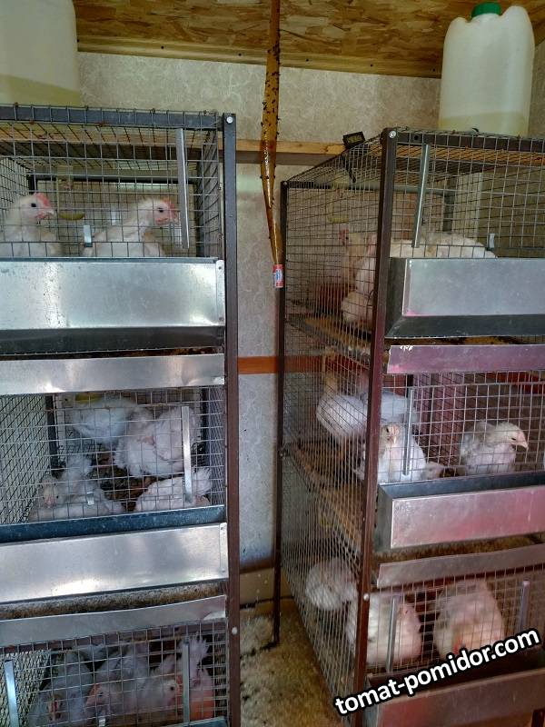 Клеточные батарии с бройлерами. КОББ-500, 33 дня