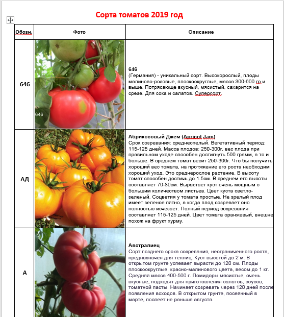 Каталог сортов томатов