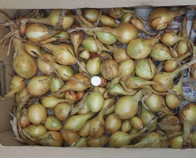 Луковицы удлинённые, насыщенного коричневато-желтого цвета. Средняя масса стандартных луковиц 80-90 г, максимальная — 160 г и более. В гнезде формируется 4-8 очень крупных луковиц, размером практически не уступающим однозачатковому, выращенному из севка. Отличается дружной отдачей урожая, хорошо выраженным полуострым вкусом. Сорт урожайный, один из самых крупных многозачатковых луков. Для всех зон возделывания культуры.