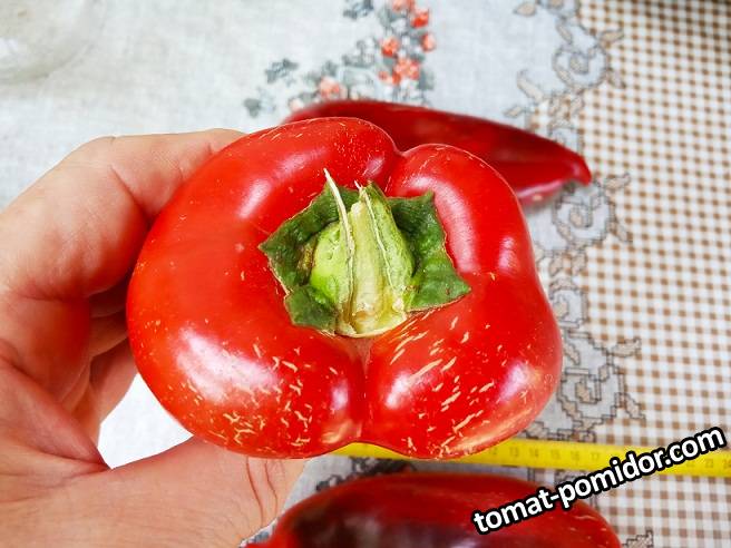 Перец сладкий,куплен на рынке для семян.очень интересная форма у плодов,у хвостика четырёхгранник,далее плод сплюснут с двух сторон,в профиль узкий,а в фас похож на вытянутое сердце с носиком.Толстостенный ,сочный,очень вкусный,без кислинки и терпкости.Кожица на плодах тонкая,нежная.