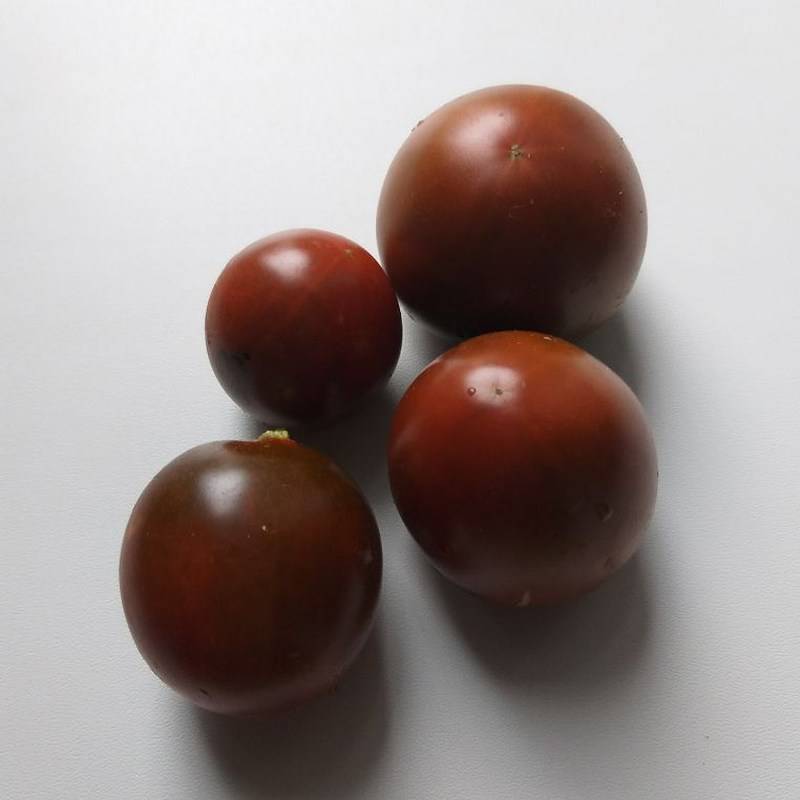 Высокорослый, в ЗГ до 1.7м, раннеспелый. Вести лучше в 2-3 стебля. Пасынков дает мало. Плоды овально-яйцевидные, коричнево-черные, массой 80 гр. В кисти 5-7 шт. Плотность плодов средняя. Очень богатый сладкий вкус.