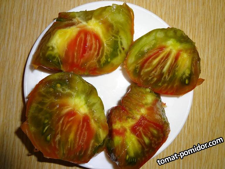 CUCSA 11612 Опубликовано 29 ноября, 2019 Красочная слива Татьяны (Bunte PflaumeTatiana’s stain) Индет. в ОГ 1,5 м. Среднеспелый. Плоды слегка сплющенные, с округлыми и ребристыми плечами, зеленые с переходом в фиолетово-коричневый на макушке, весом 150-250 грамм. Мякоть зеленая с красной звездой в центре, с великолепным вкусом и экзотическим ароматом.Плоды трехцветныесладкие,очень вкусные. Ссылка на комментарий