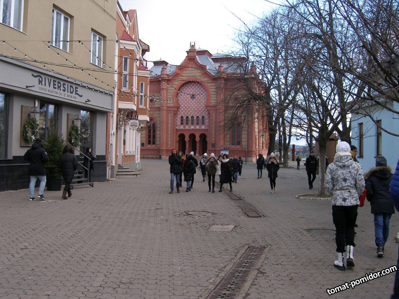 Ужгород, впереди - филармония (бывш. синагога)